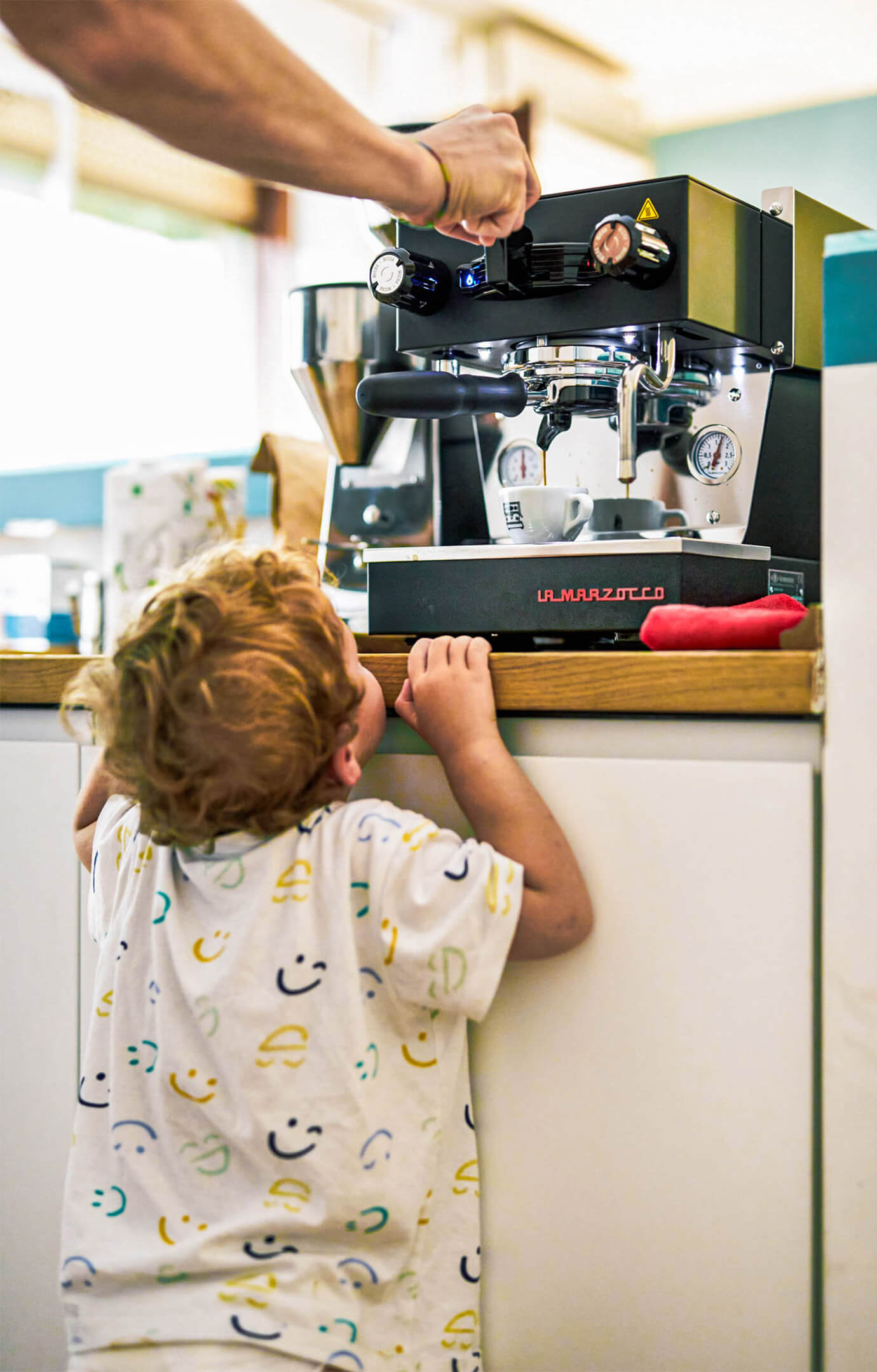 Passt sich deiner Morgenroutine an. Eine kurze Aufheizzeit, eine einfache Einrichtung und alle Werkzeuge, die du brauchst, um zu Hause Espresso inCafé-Qualität zu genießen.